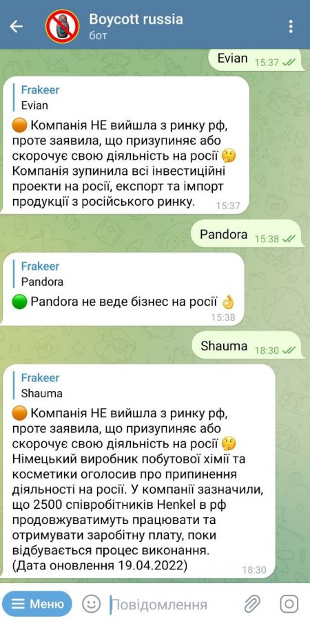 За допомогою Telegram-бота можна дізнатися, чи вийшла компанія-виробник певного товару з російського ринку