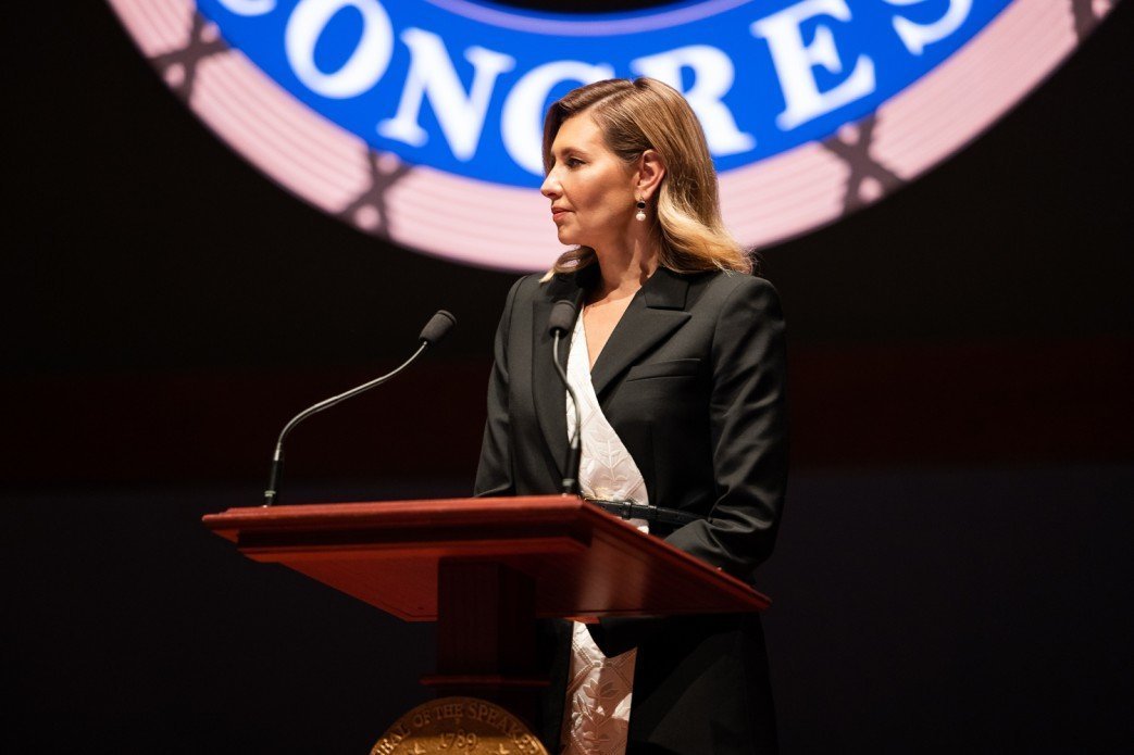 На початку промови Олена Зеленська наголосила, що говоритиме не за протоколом, а передусім, як жінка й мати. До конгресменів вона звернулася не лише, як до політиків і представників партій, а як до матерів і батьків, дідусів і бабусь, доньок і синів. Дружина Президента розповіла про трагедії, які переживають українські сім’ї через російське вторгнення.