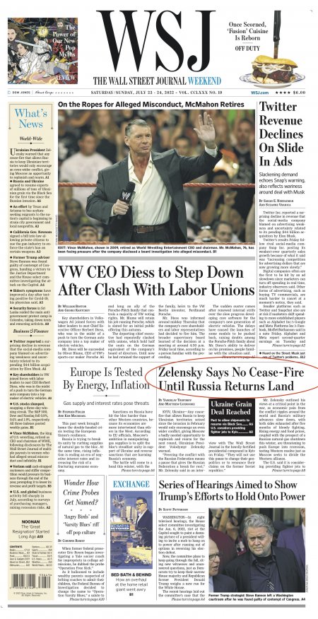 - «Заморожування конфлікту з Російською Федерацією означає паузу, яка дає Російській Федерації перерву для відпочинку», — сказав пан Зеленський в інтерв’ю The Wall Street Journal (повне інтерв’ю).