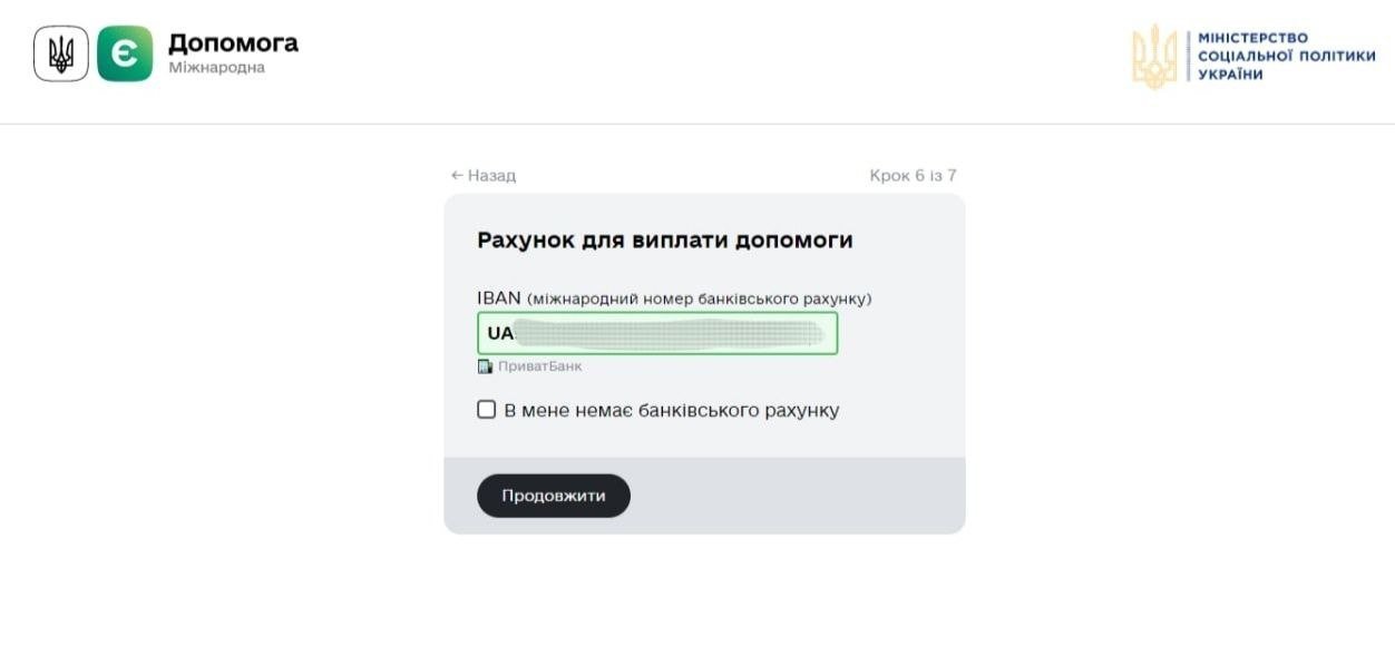 - IBAN (необхідний для виплати допомоги на рахунок).