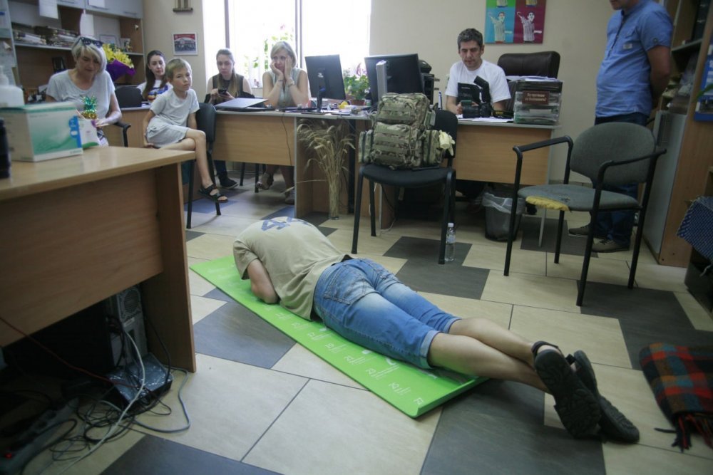 Роман Бутрімов розповів, що краще під час прильоту – впасти на підлогу животом вниз, голову прикрити, при цьому руки мають бути зігнуті у ліктях й притиснуті до тіла. Схрестити ноги, міцно зімкнувши ягодиці. Під час обстрілу можна рахувати або наспівувати пісню, щоб психологічно легше переносити обстріл.