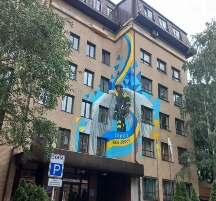 Стінопис із зображенням рятувальника з’явився на Печерську, на фасаді будівлі Департаменту запобігання надзвичайним ситуаціям ДСНС. Мурал назвали «Герої без зброї». На ньому зображений рятувальник із янгольськими крилами.