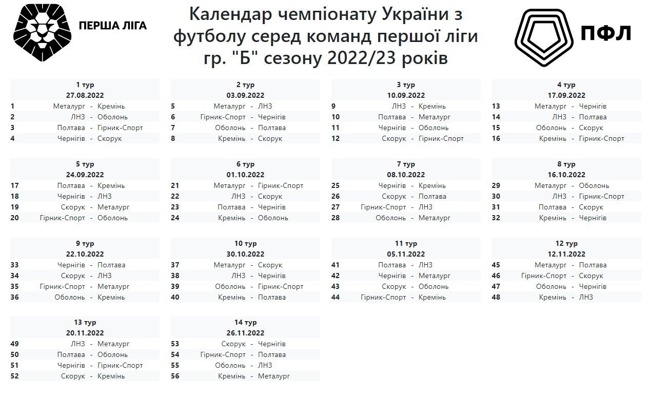 Став відомим календар матчів першої частини сезону, а також остаточний склад учасників чемпіонату. У новому сезоні Першої ліги команди будуть розділені на дві групи – «А» та «Б». У кожній представлено по 8 клубів, які на першому етапі зіграють у два кола. Потім команди знову «діляться» на дві групи (по чотири сильніших та слабших із кожної) та проводять другий етап. При цьому на вирішальному етапі команди гратимуть лише з представниками іншої групи (у два кола), а очки, набрані проти суперників своєї групи, зберігаються.