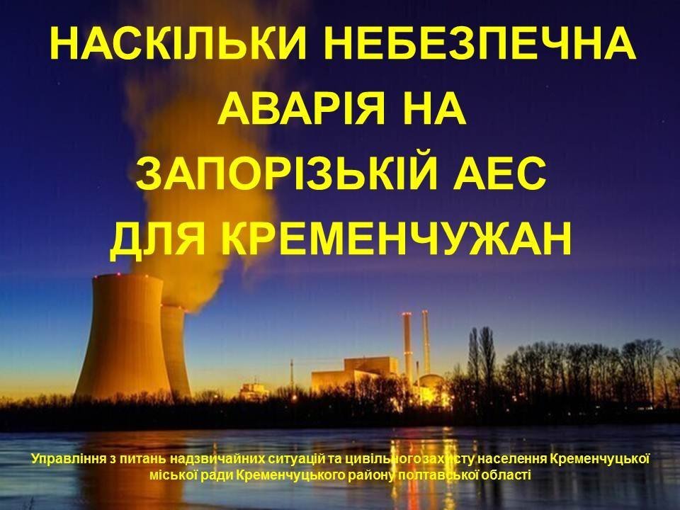 Зважаючи на відносно невелику відстань від захопленої російськими військами атомної електростанції до Кременчука (200 км), багатьох мешканців міста також хвилює питання що їм загрожує у разі аварії на Запорізькій АЕС? Відповідь на нього та роз’яснення від фахівців Управління з питань надзвичайних ситуацій та цивільного захисту населення Кременчуцької міської ради пресслужба мерії опублікувала на сайті ради.