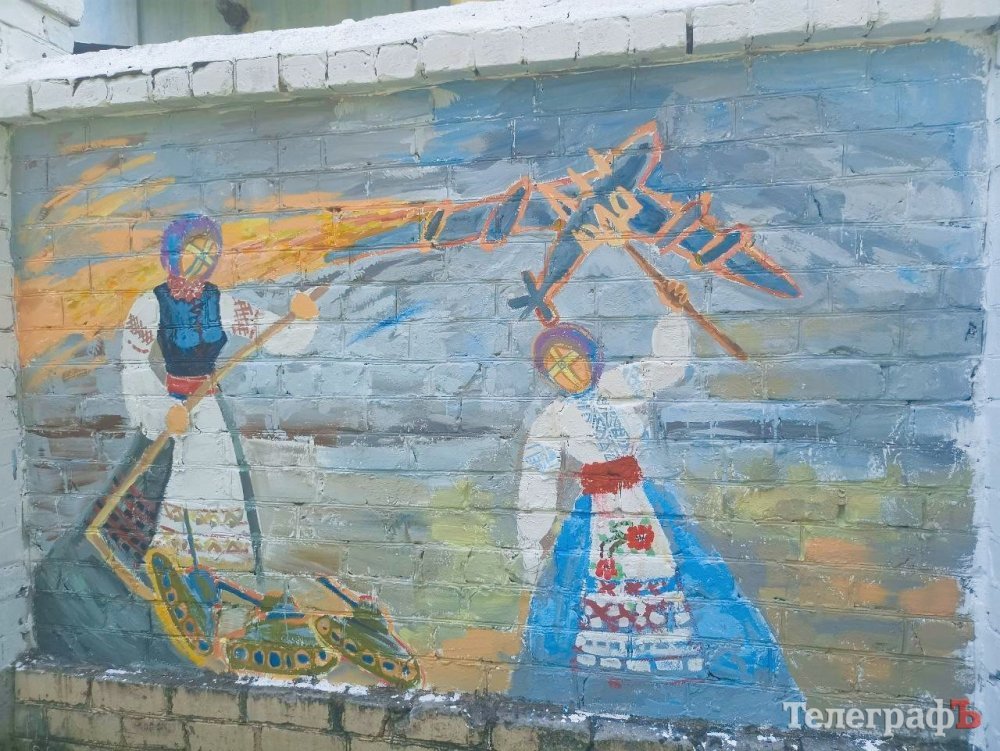 Частина робіт присвячена історії 26 училища, військовим, Горигорію Сковороді, частина з персональної виставки Зоряни Код UA. Тут ви можете побачили ляльок-мотанок, які захищають українців. Також серед муралів видніється острів Зміїний з відомою фразою та марка «Доброго вечора, ми з України», де трактор тягне російський танк.