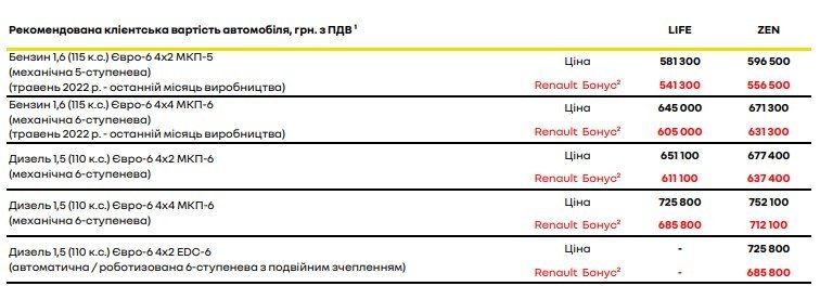 Ми сходили на сайт Renault і ось клієнтські ціни на DUSTER: