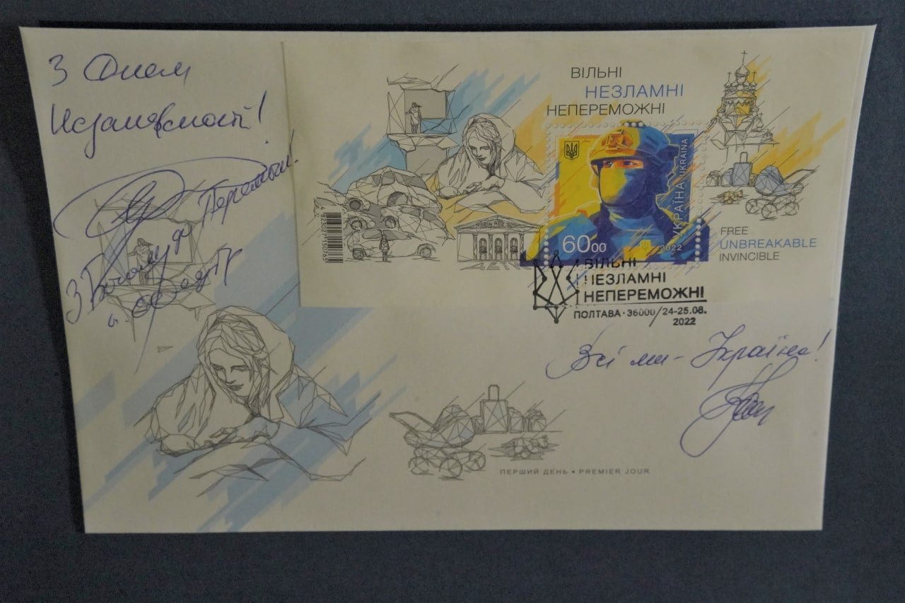 24 серпня, у День Незалежності України, погасили нову воєнну марку «Вільні, Незламні, Непереможні». Як повідомляє Полтавська ОВА, урочисте погашення проводили в укритті під час повітряної тривоги – начальник Полтавської ОВА Дмитро Лунін, голова Полтавської облради Олександр Біленький, архієпископ Полтавський і Кременчуцький Федір, представники «Укрпошти» та мешканці міста.