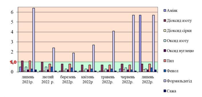 Порівняно з липнем 2021 року загальний рівень забруднення атмосферного повітря міста дещо зменшився.