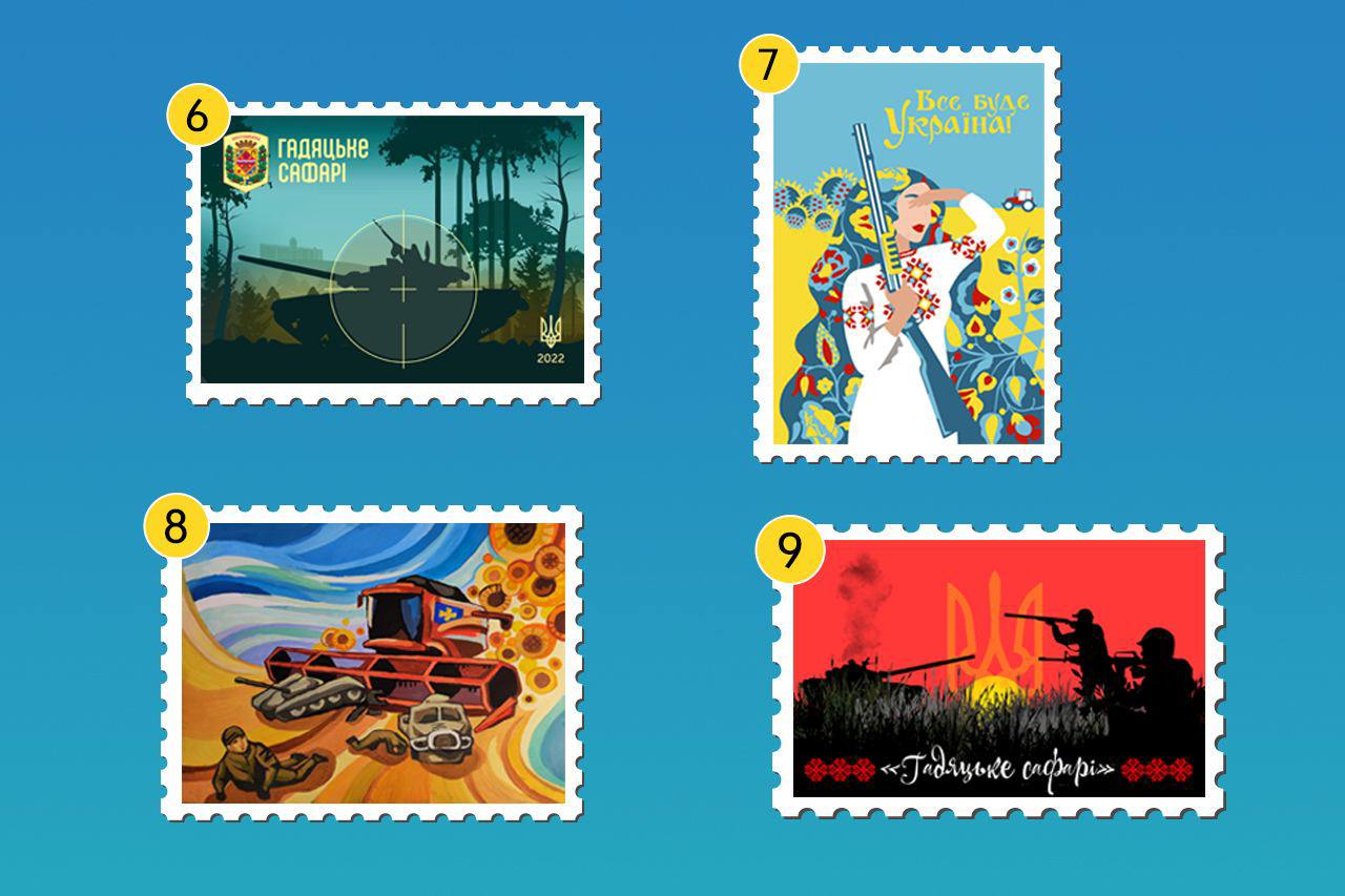 «Гадяцьке сафарі» – це перша марка Полтавської області воєнного часу. І вона повністю народна, бо ескізи створювали й обирають саме жителі регіону. До речі, серед варіантів є ескіз кременчужанки, нашої колеги-журналістки Олени Ліпошко (під номером 4).