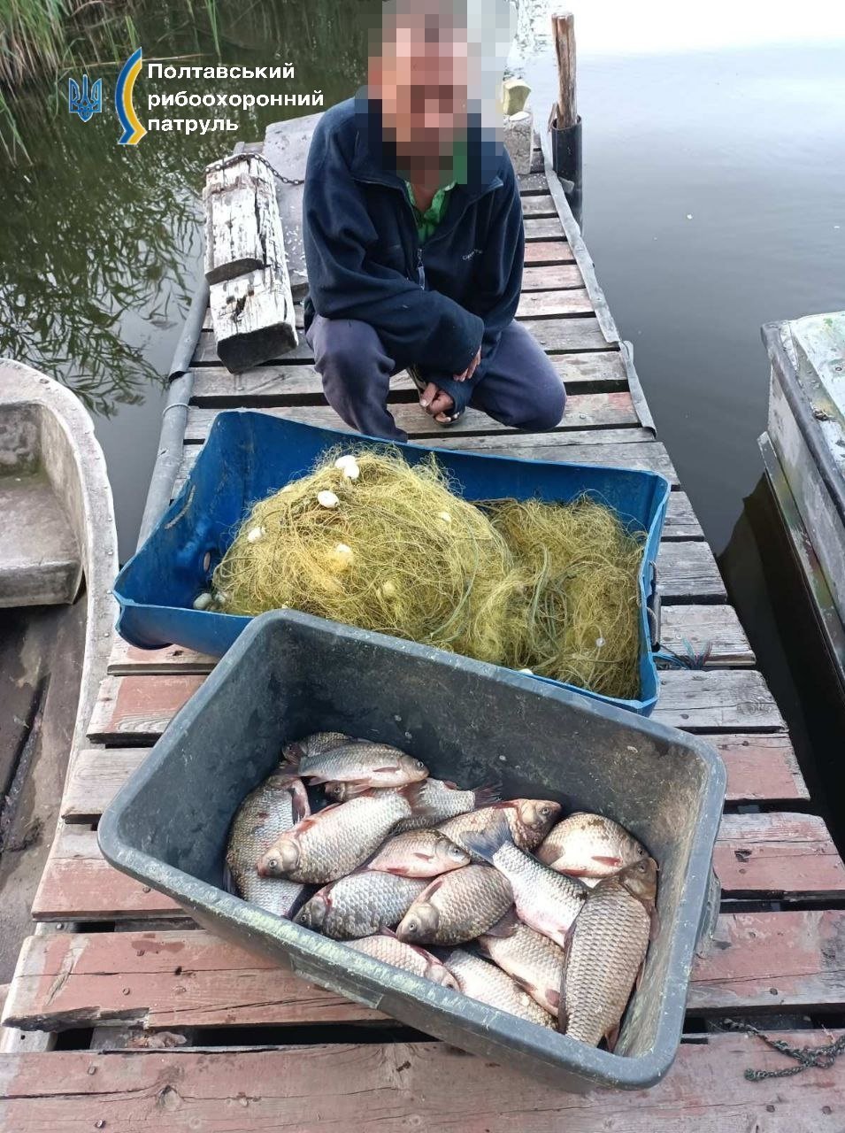 На водоймі Кам’янського водосховища біля села Придніпрянське (Кобеляцька громада) затримали рибалку-порушника, повідомляє Полтавський рибоохоронний патруль. Рибалка виловив рибу двома жиляними сітками з алюмінієвого човна. У підсумку нарибалив 12 карасів, ляща та сазана.