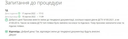 Примітно, що під час проведення закупівлі, в учасника тендеру виникло таке уточнення: