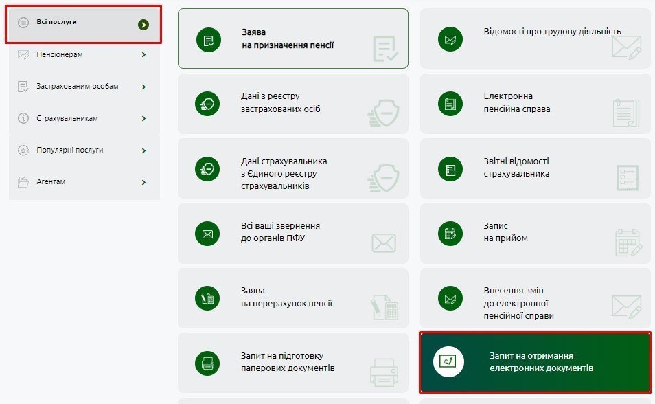 2. У лівому боковому меню перейти у розділ «Усі послуги» – «Запит на отримання електронних документів».