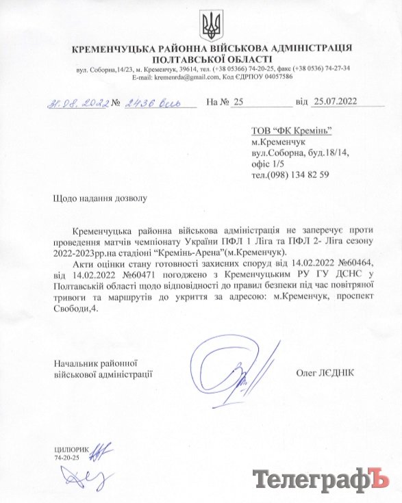 - Полтавська обласна військова адміністрація вам офіційно відмовляла в проведенні матчів у Кременчуці?