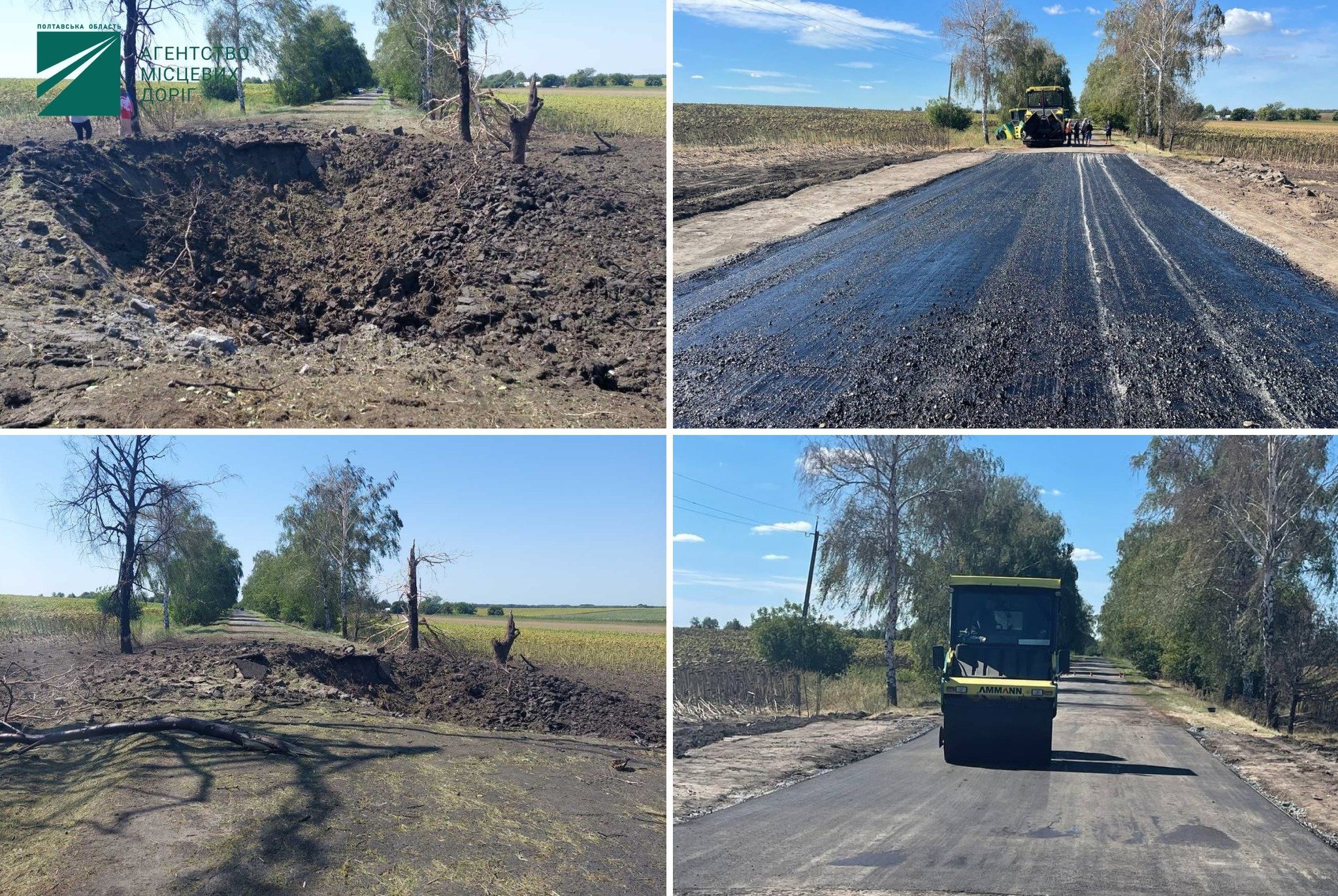 — Силами громади та села засипали ґрунтом яму, обрізали обгорілі дерева. За кошти з аварійного Обласного фонду підрядники Агентства місцевих доріг провели улаштування основи дорожнього одягу та відновили асфальтобетонне покриття, — повідомило Агентство місцевих доріг Полтавської області.