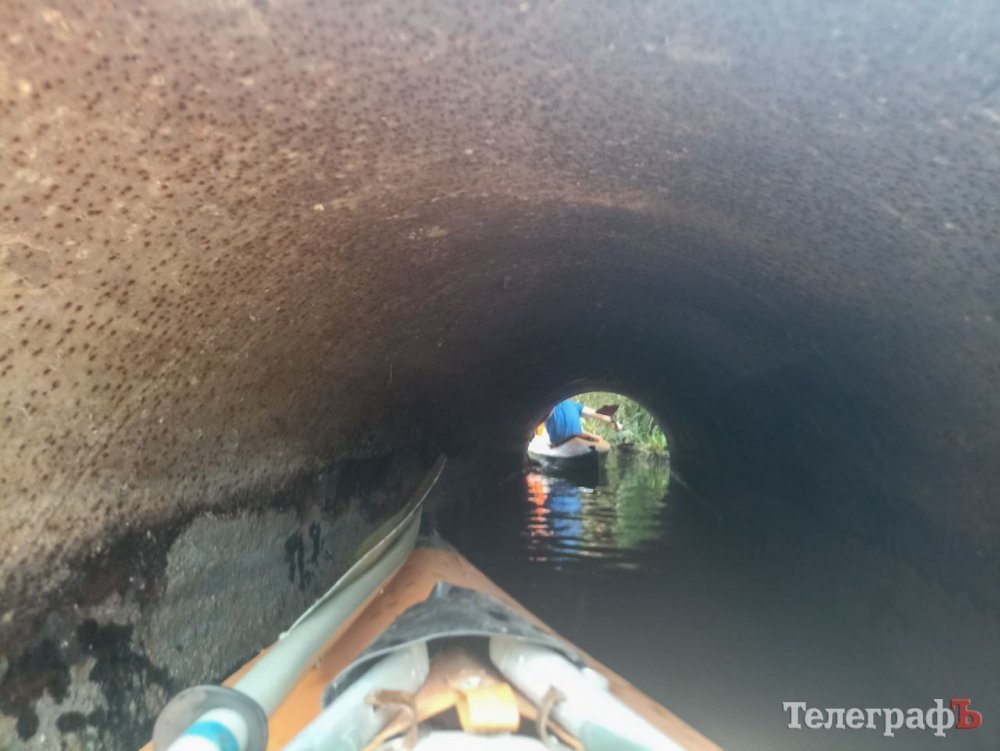 Сівши у байдарку, під звуки грому ми направилися до труби.