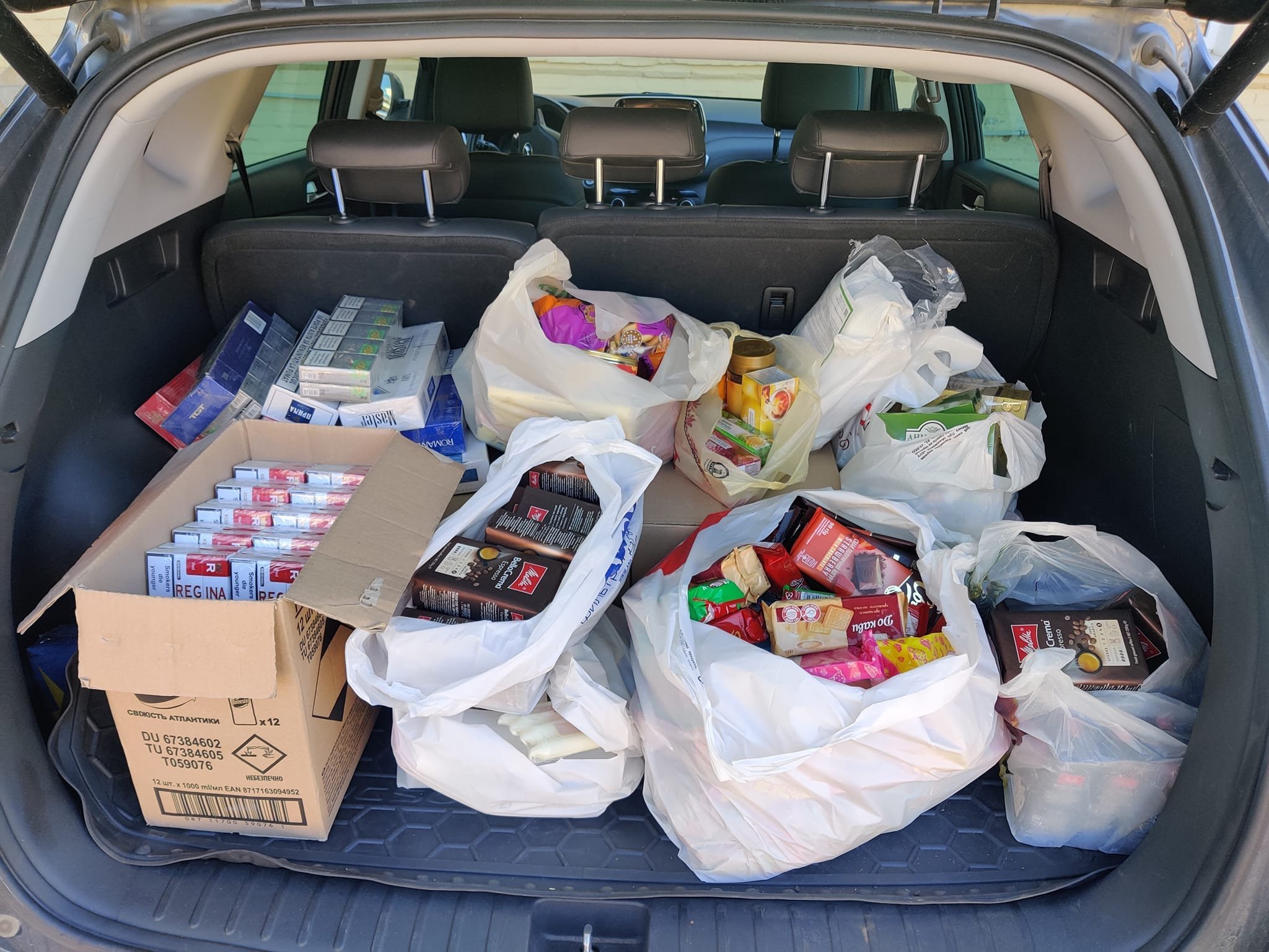 Цими вихідними волонтерка з Кременчука Ольга Назарова доставила військовим допомогу на Херсонський напрямок. Харчові продукти збирали й на офісі Видавничого дому Приватна газета. Наразі волонтерка збирає кошти на авто бійцям, адже їх транспорт згорів.