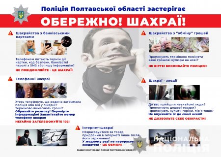 За 9 місяців з початку року за фактами шахрайства поліція Полтавщини під процесуальним керівництвом прокуратури розпочала понад 1770 кримінальних проваджень. За попередніми підрахунками шахраї завдали збитків громадянам на загальну суму близько 46 млн грн