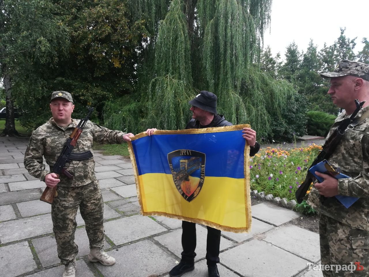 Після завершення урочистостей командиру добровольчого формування передав прапор, виготовлений Волонтерським штабом оборони Кременчука, його керівник Олег Биков. На прапорі зображений шеврон ДФТГ «Правобережжя №1».