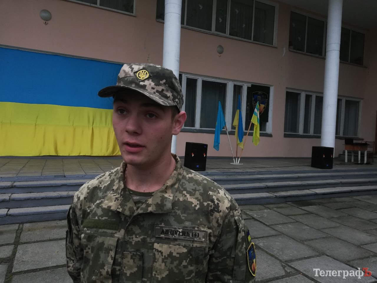 Журналістам вдалося поговорити з наймолодшим добровольцем, що склав присягу – 18-річним Іваном Проценком. Він кременчужанин, живе на Раківці, навчається в Полтавському юридичному інституті при університеті імені Ярослава Мудрого.
