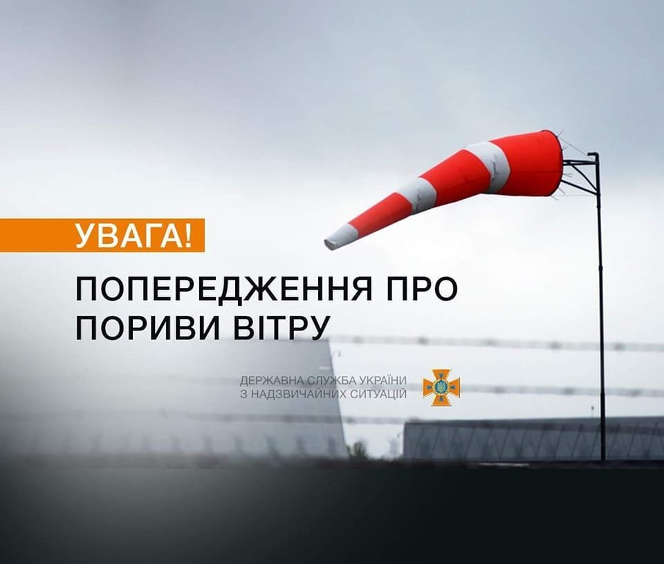 У понеділок, 19 вересня, по всій Україні, окрім півдня, очікуються сильні пориви вітру. Про це повідомили у пресслужбі ДСНС України.