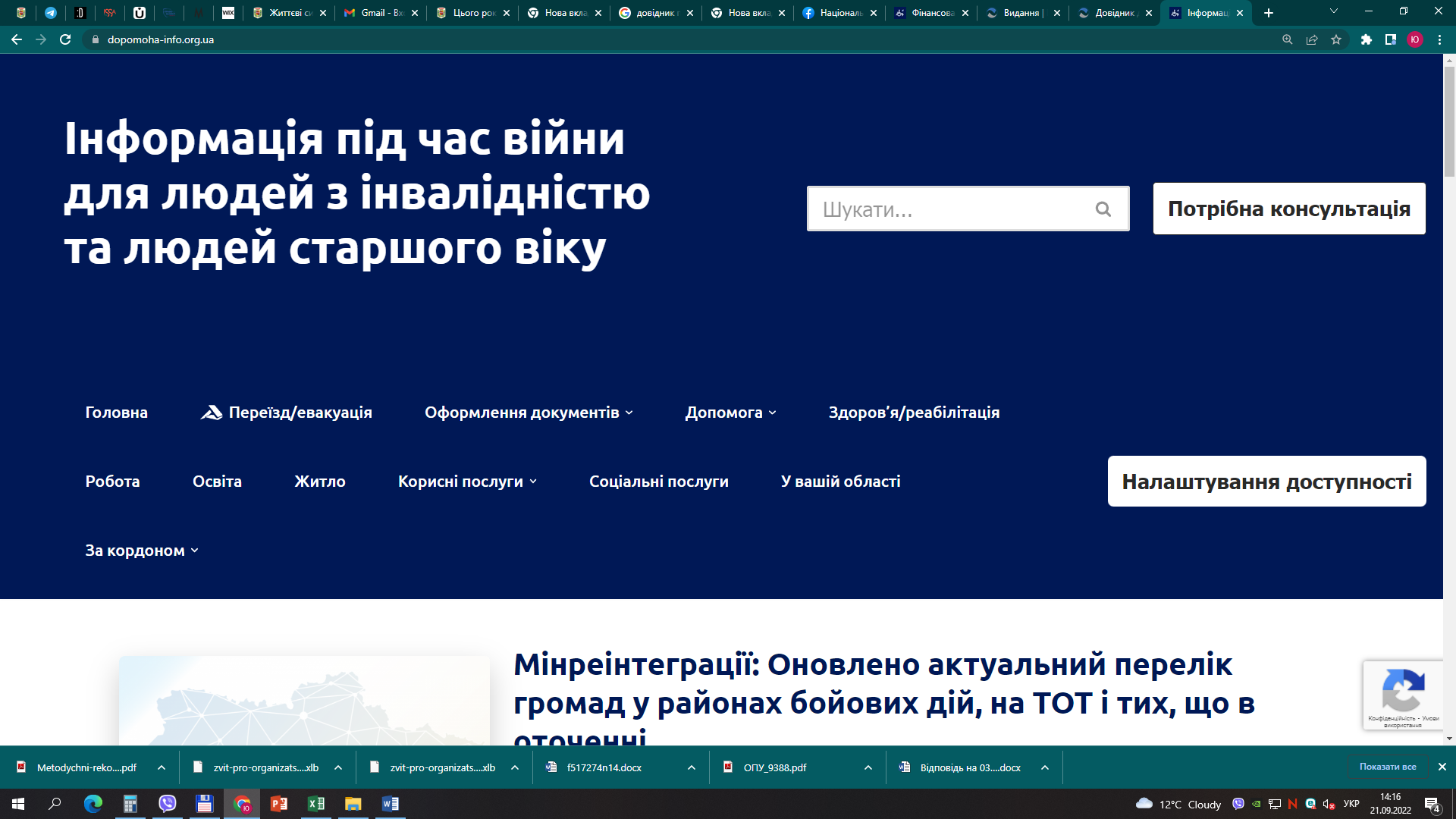 В Україні запустили сайт «Інформація під час війни для людей з інвалідністю та людей старшого віку» для українців вдома й тих, хто опинився за кордоном через повномасштабну війну рф проти нашої країни. Про це повідомила Людмила Корнієнко, директорка департаменту соцзахисту населення Полтавської ОВА.