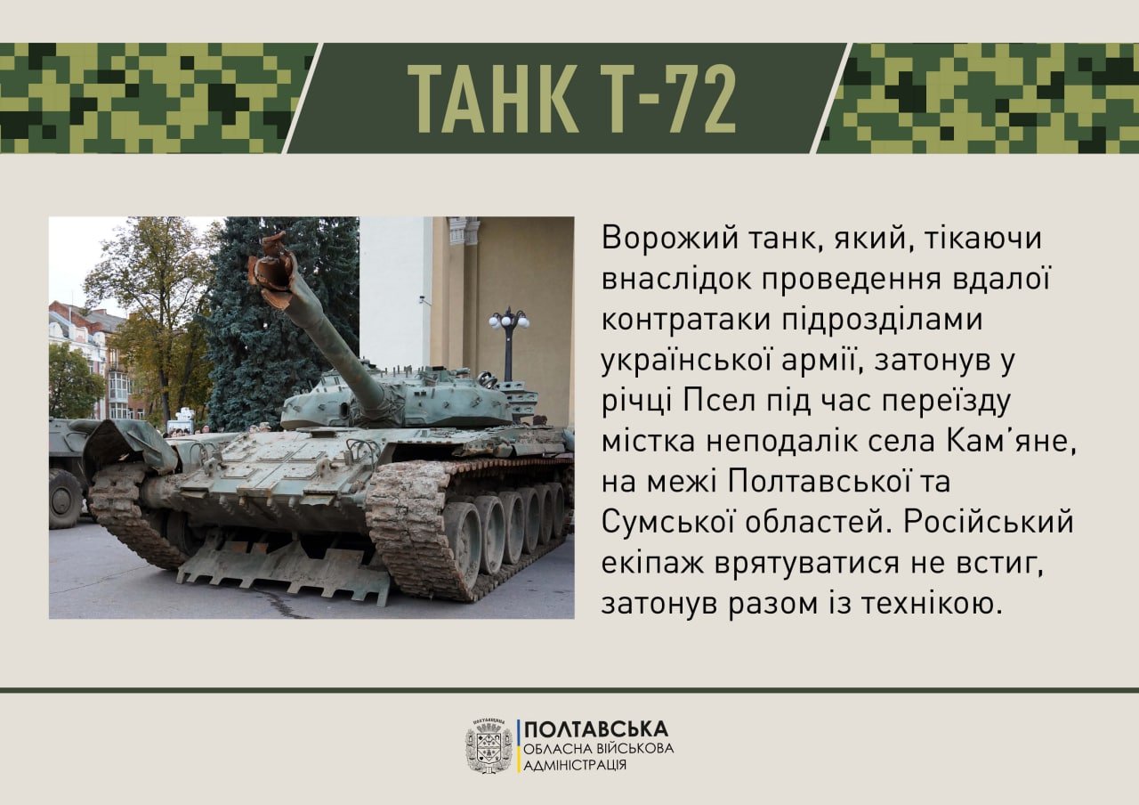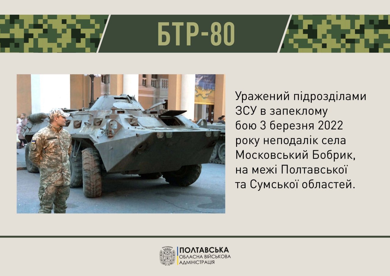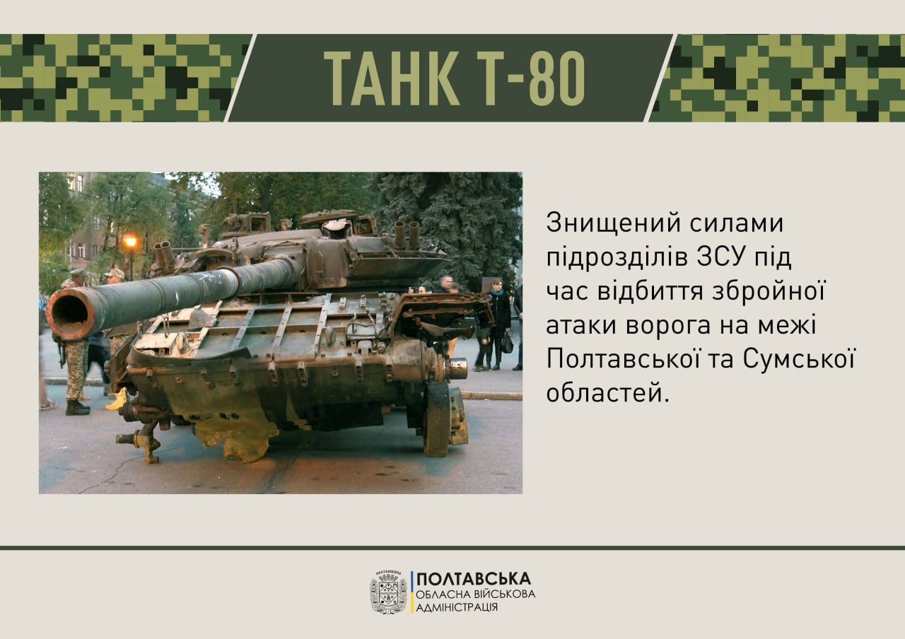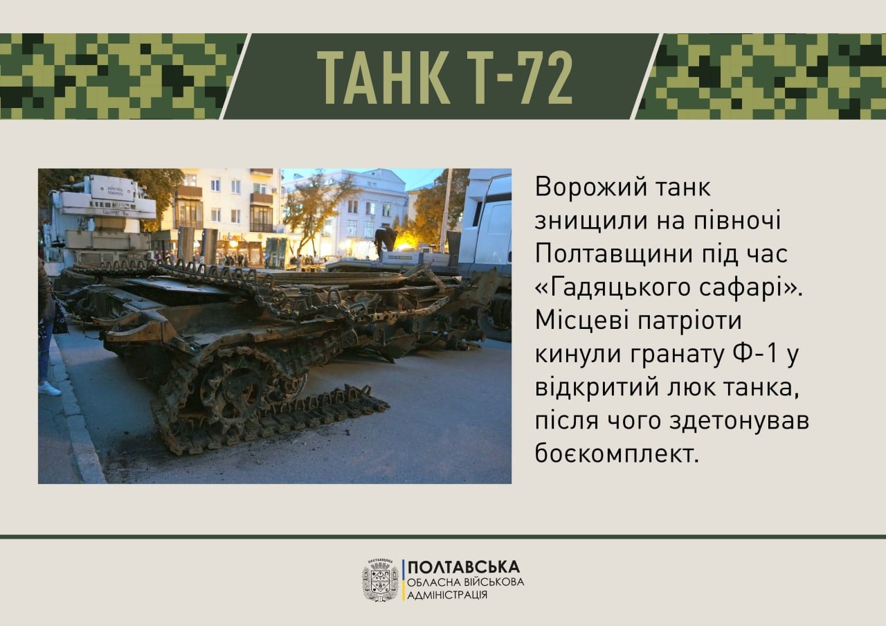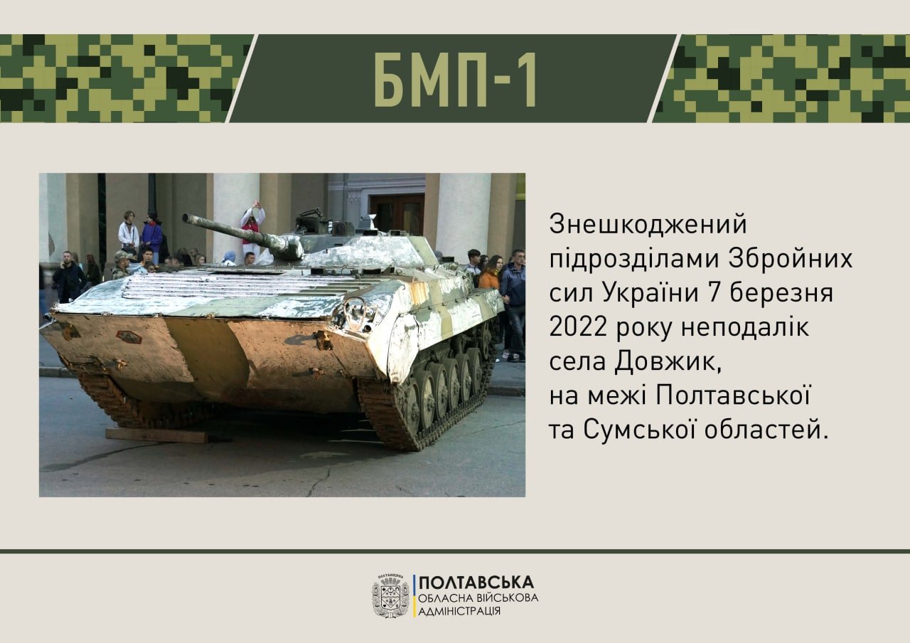 У Полтавській ОВА розповіли невеликі історії знищеної техніки росіян. Нагадаємо, 22 вересня до Дня Полтави в обласному центрі облаштували експозицію.