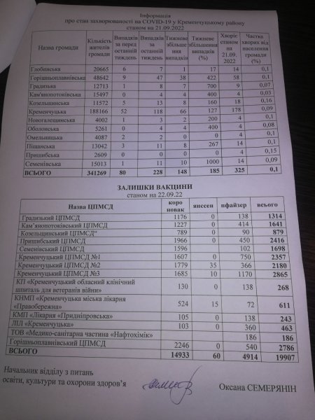 За його словами, станом на 22 вересня у районі захворіло вже 325 людей. Лише за останній тиждень зафіксували 228 нових випадків. Найбільше захворювань зареєстрували у Кременчуці (118), Горішніх Плавнях (47) та Семенівський територіальній громаді (11).