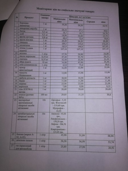 Фахівці Кременчуцького районного управління Держпродспоживслужби щоденно відслідковують ціни на соціально значущі товари