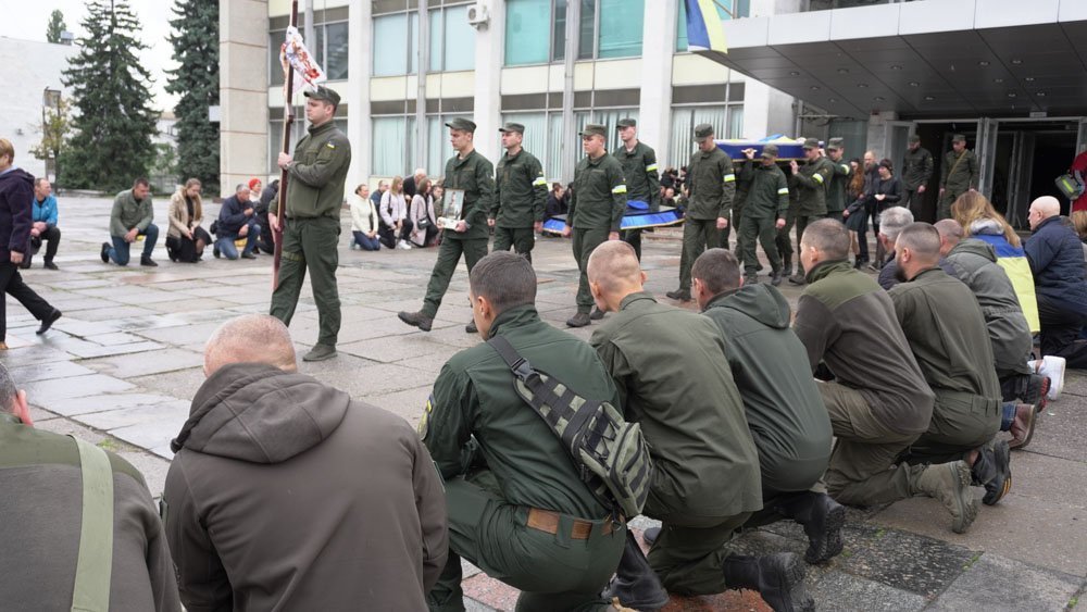 Сьогодні, 23 вересня, Кременчук попрощався з 36-річним воїном Олександром Гученком, який помер 21 вересня. Покласти квіти до домовини військового прийшли друзі, побратими, небайдужі кременчужани та представники міської влади.