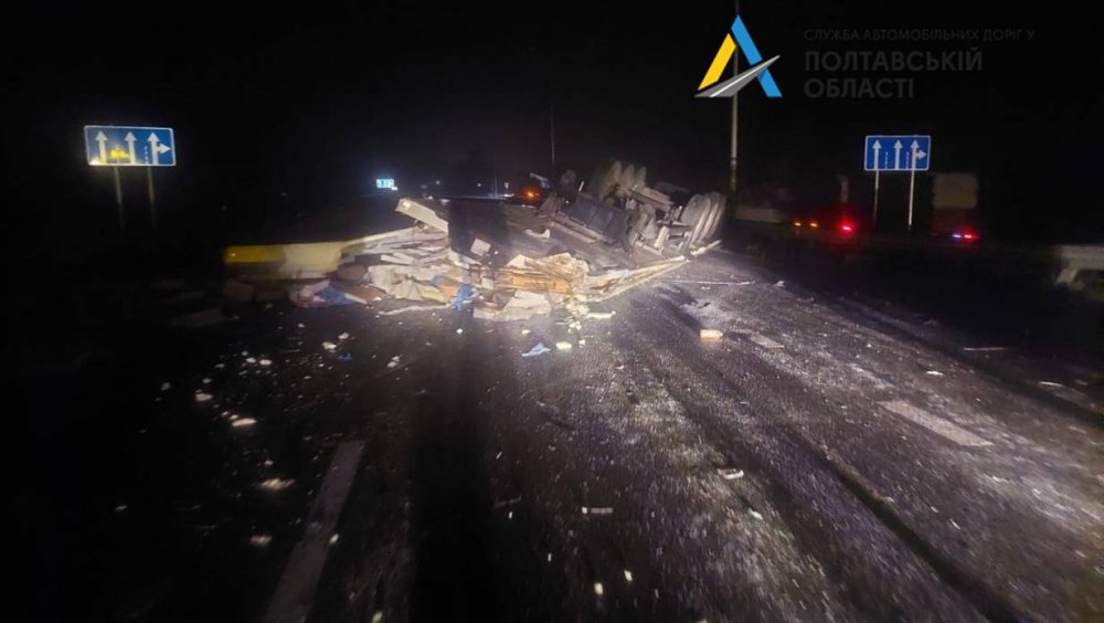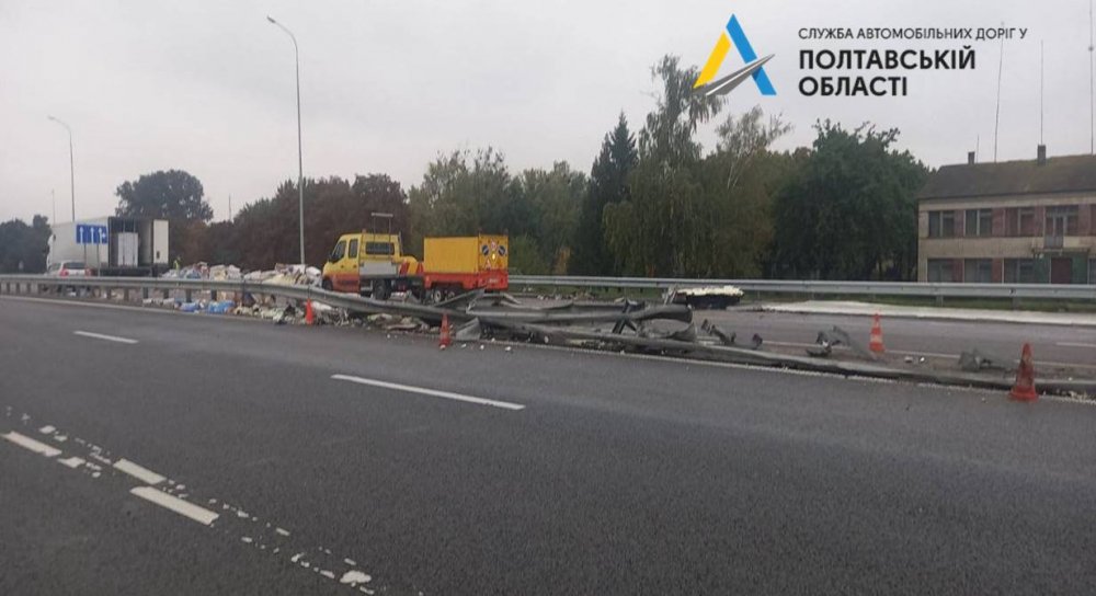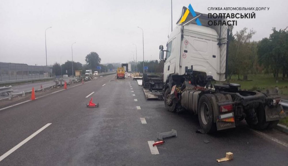За попередньою інформацією близько 23.30 27 вересня водій вантажівки Scania з напівпричепом, проїжджаючи с.Поділ Миргородського району, не впорався з керуванням та допустив зіткнення автомобіля з відбійником.