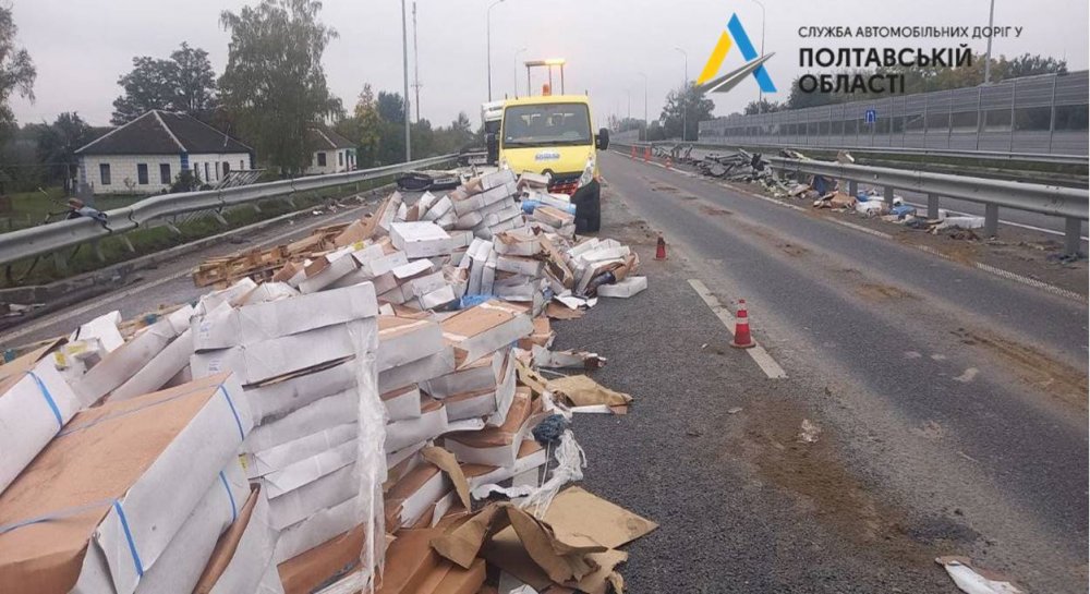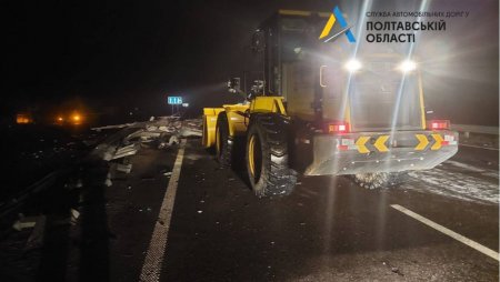 Служба автомобільних доріг на Полтавщині проводить ліквідацію наслідків ДТП, яка сталася на автодорозі Київ-Харків. Підрядники працюють, аби забезпечити комфортний проїзд транспорту.