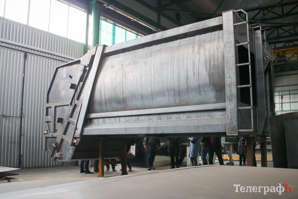 До речі, на заводі показали, як виготовляють місткості для збору сміття — вони обладнані спеціальними пристроями, які пресують сміття та економлять місце.