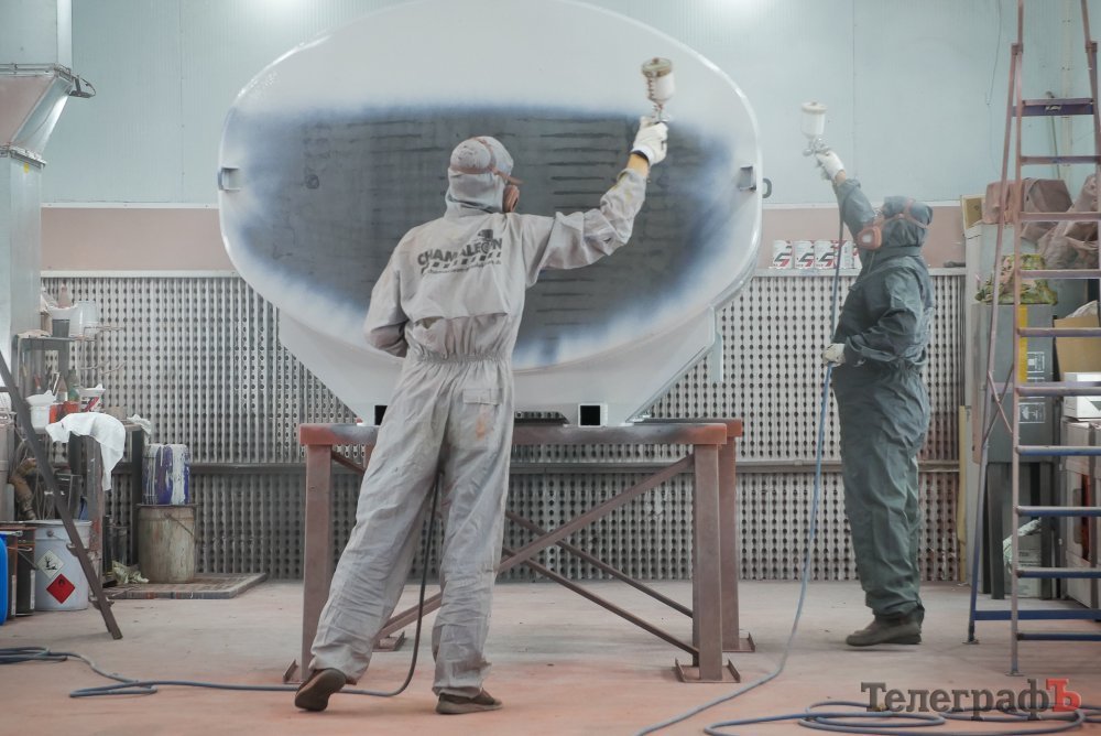Директор підприємства Микола Корецький показав журналістам виробництво: заготівельний, зварювальний, лако-фарбувальний, токарний, складальний цехи, а також сервісний центр.