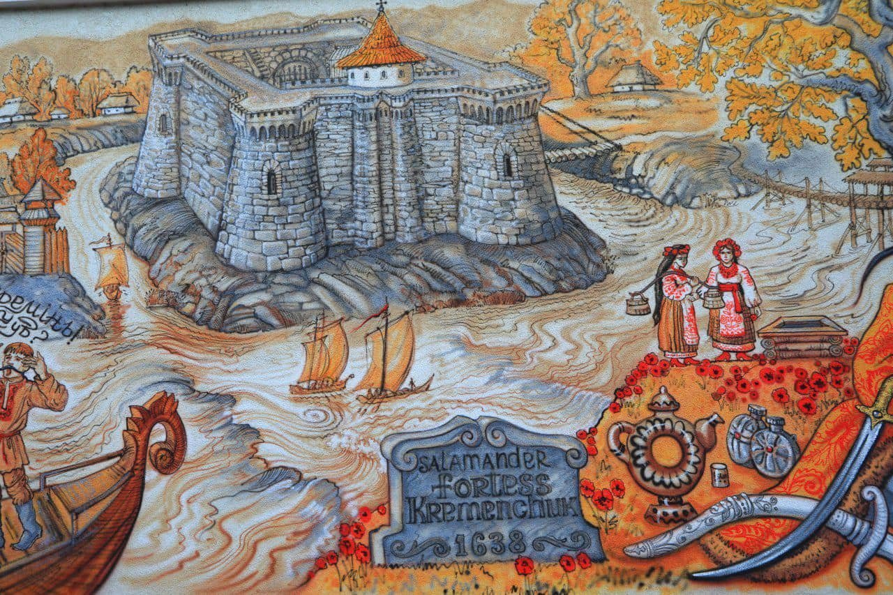 Стінопис довжиною 7 метрів у техніці аерографія у вересні створили Оксана Бойко і Микола Степаненко. Він «розповідає» про виникнення назви міста: кременеві пороги, козацьку фортецю Саламандра-Кременчук, що збудована за проєктом Гійома Боплана, та славного Козака Кременя.