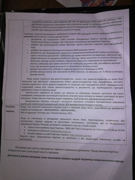Цю суму з розрахунку на одне домогосподарство ВПО надає БФ «Карітас Полтава» завдяки підтримці американського народу