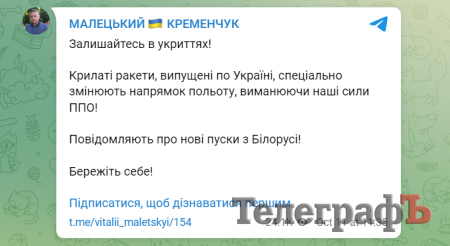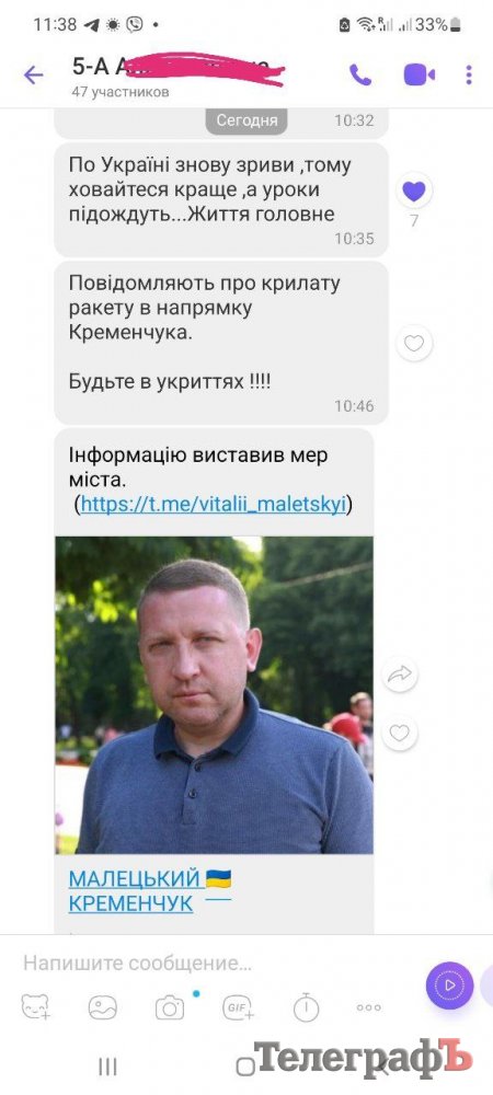 Вчора, 11 жовтня, у робочі та батьківські чати вчителі кременчуцьких шкіл стали масово надсилати посилання на телеграм-канал міського голови Віталія Малецького та запрошення приєднатись: мовляв, на цьому каналі — найоперативніша та найдостовірніша інформація, що дуже актуально під час воєнного стану. Також педагоги радять передати інформацію рідним та близьким.