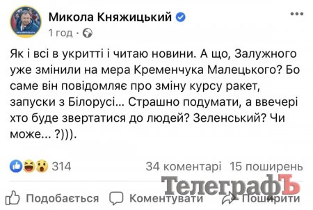 Річ у тому, що 11 жовтня мер Кременчука оприлюднив ну дуже недостовірну інформацію. Під час ранкової нервової та довгої повітряної тривоги він сповістив підписників про запуск ракет у бік Кременчука, закликавши перебувати в укриттях.