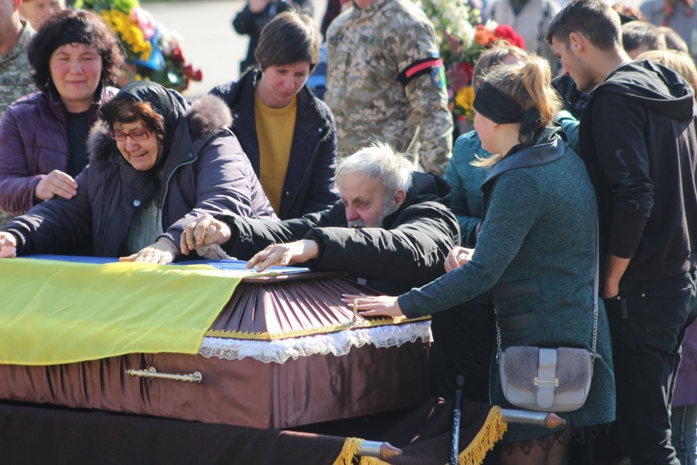 Попрощатися з загиблим захисником України прийшло дуже багато людей. Були квіти, свічки, сльози й українські жовто-блакитні полотнища.