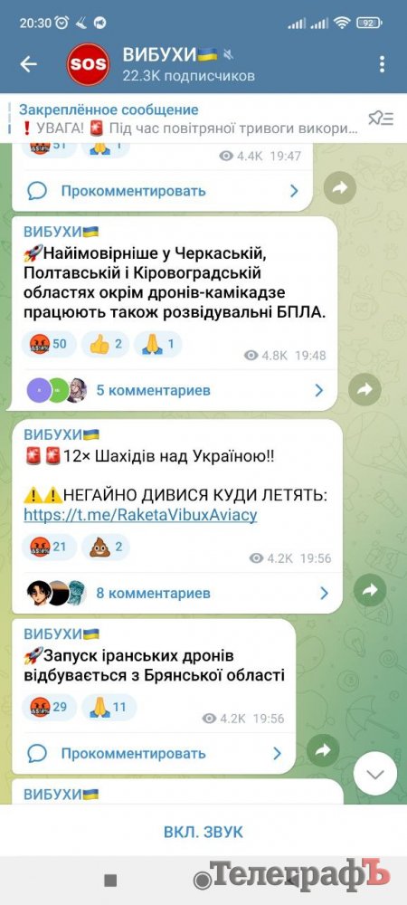 — Вчора о 19.31 було оголошено повітряну тривогу. У ЗМІ (телеграм-канал «Вибухи») була опублікована інформація про дрони-камікадзе і БПЛА над територією області. По проспекту Лесі Українки, 100 розташована АЗК БРСМ-Нафта. Світло там не вимикалось протягом усієї тривоги. Дзвінок на гарячу лінію не приніс результатів — оператор здивувалась, не могла знайти у переліку заправку, потім просто сказала, що дзвінок прийнято.