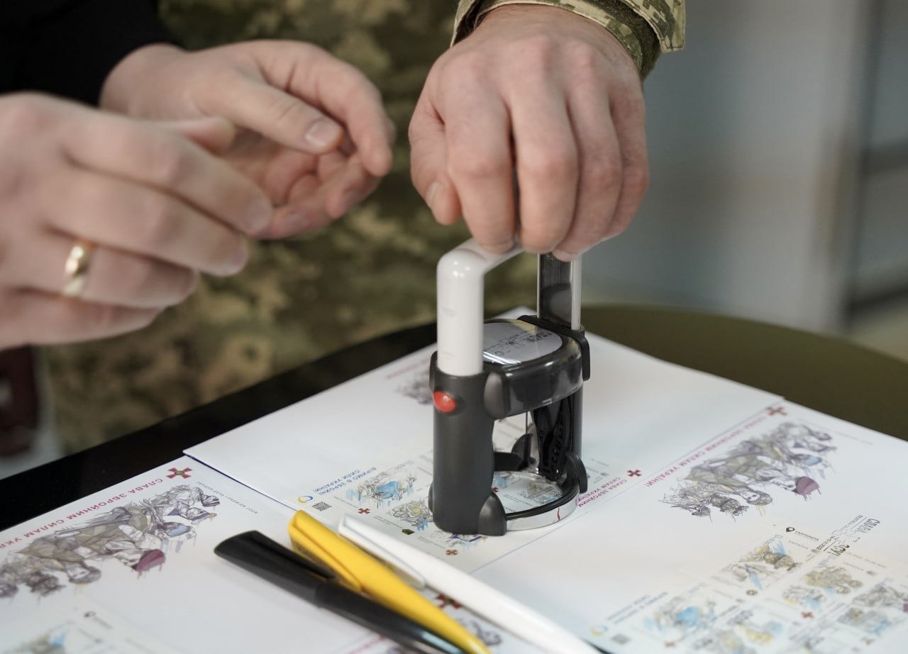 У День захисників і захисниць України в Полтаві погасили нову серію марок «Слава Збройним Силам України!». Про це повідомили у Полтавській обласній військовій адміністрації.