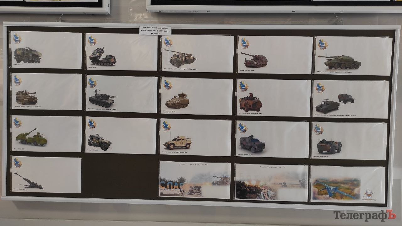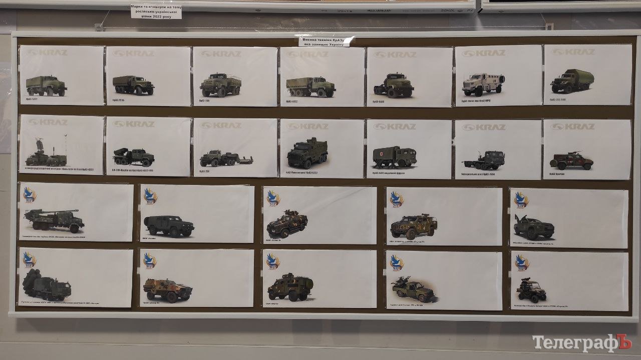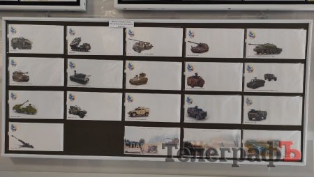 Також на виставці представлені поштові конверти із воєнною технікою, яку протягом останніх місяців надають Україні західні партнери, разом із продукцією КрАЗу.