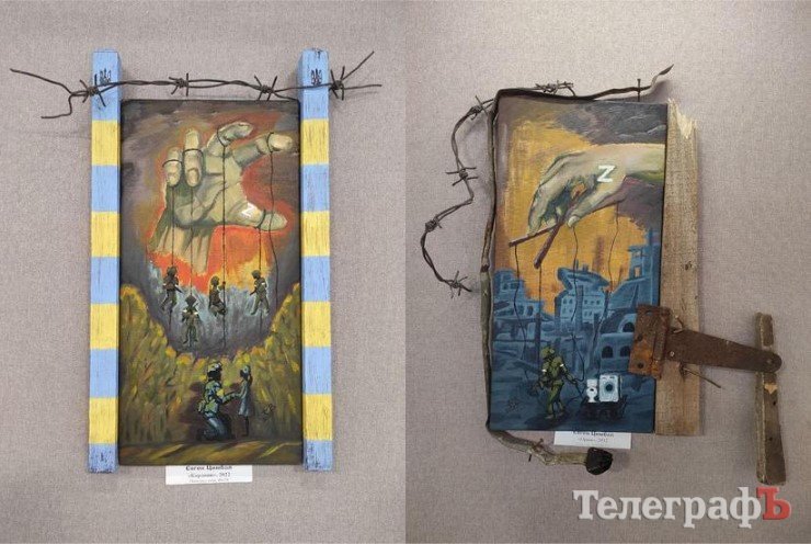 Понад 30 митців з Кременчука, Горішніх Плавнів, Козельщини, Полтави та Харкова представили свої роботи у техніках живопису та графіки, колажів і плакатів, комп’ютерної графіки, ляльок та кераміки. Були й інсталяції Євгена Цимбала «Орки» та «Кордон».