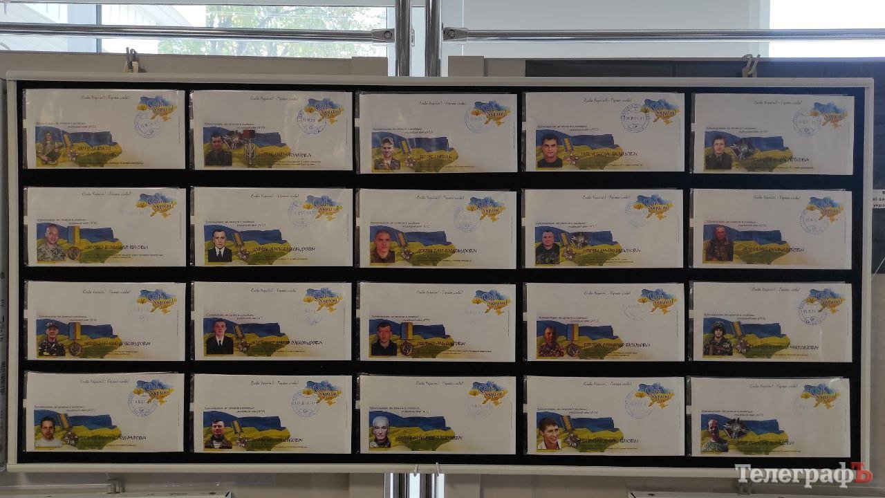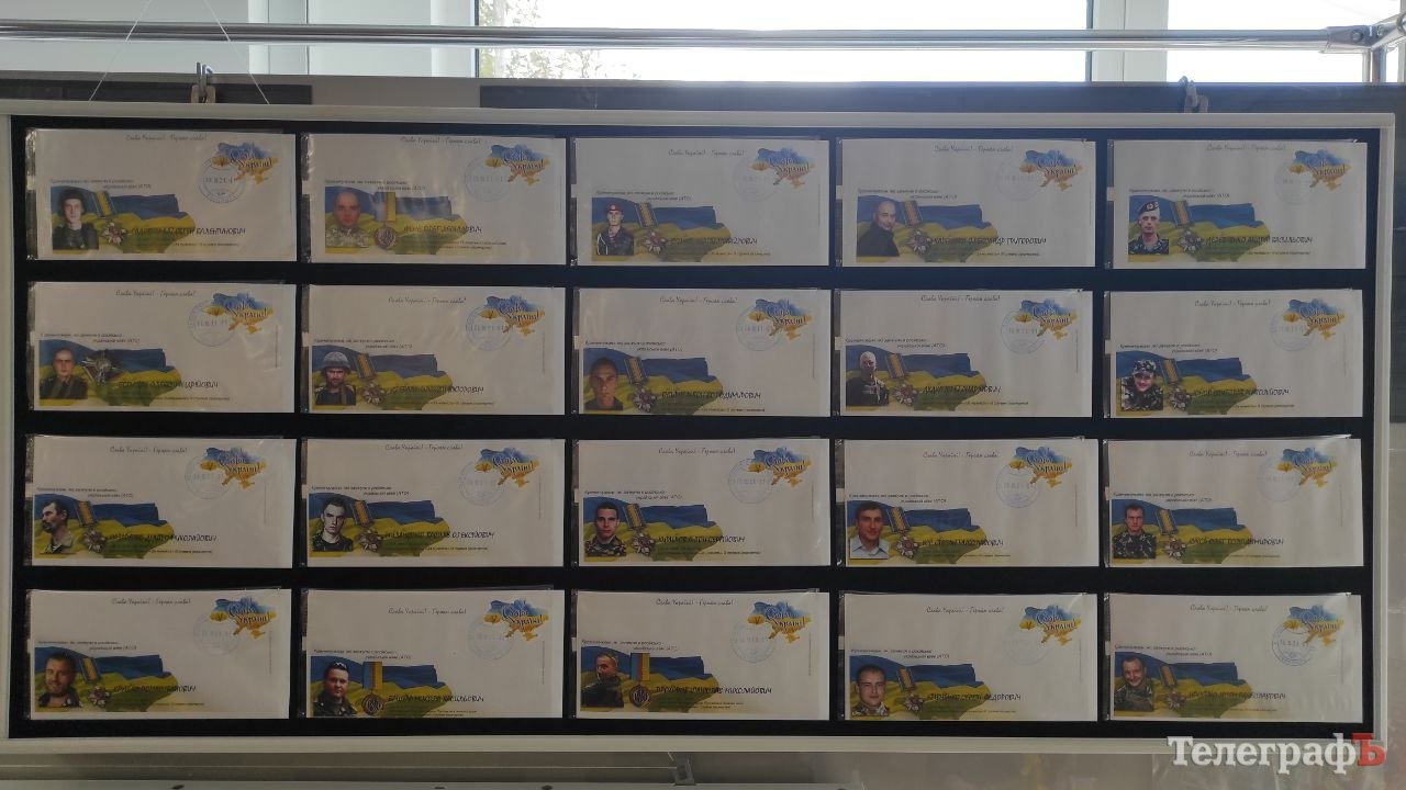 На інших стендах конверти від Кременчуцького товариства філателістів із зображеними на них 40 полеглими героями Кременчука, які захищали нашу країну під час АТО.