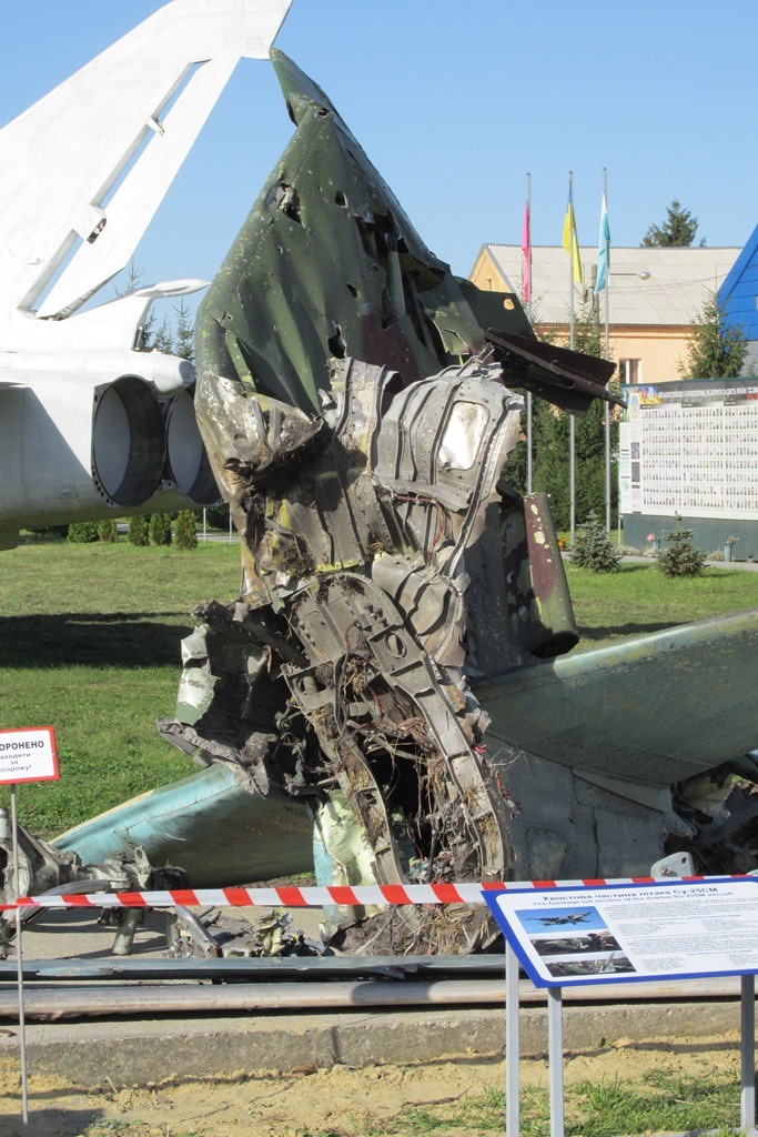 Хвостова частина літака Су-25СМ – це перший експонат знищеної техніки, який показали в Києві. Літак належав до 18-го полку штурмової авіації Повітряно-космічних сил російської федерації. Був збитий українськими військовими 2 березня під Макаровим (Київська область).