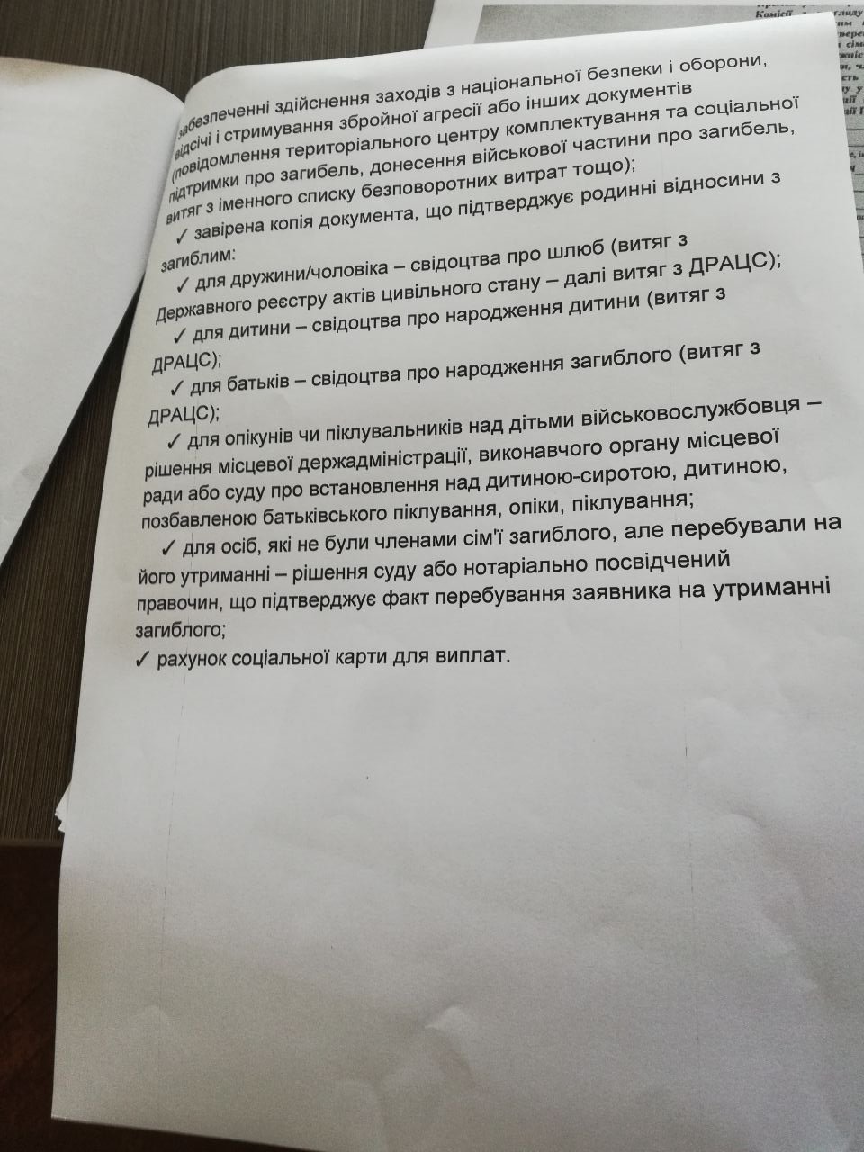 Документи, які додаються до заяви про виплату одноразової грошової допомоги членами сімей загиблих (померлих) осіб, які захищали незалежність, суверенітет та територіальну цілісність України, забезпечували безпеку населення та інтереси держави у зв’язку з військовою агресією російської федерації проти України: