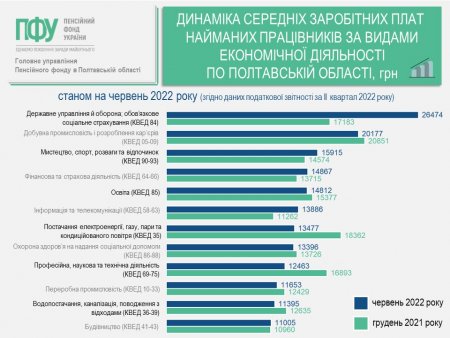 Наразі лідером по зарплатах в області зокрема і в Україні в цілому є підприємства державного управління й оборони, а також з обов’язкового соціального страхування. На таких підприємствах заробітна плата не зменшилася, а, навпаки, зросла на 54,1%, або на 9,3 тис. грн, і є найвищою на Полтавщині — 26,5 тис. грн.