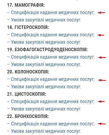 Більш детальний перелік послуг для кожного дослідження опублікований на сайті Національної служби здоров’я України (пункти 17-22, файл «Специфікація»).
