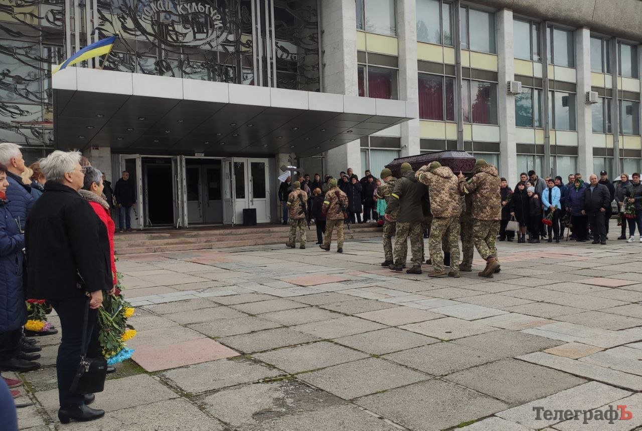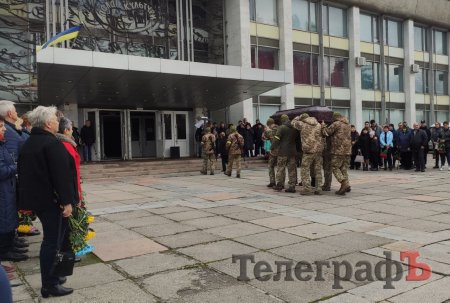 Після прощання у Міському палаці культури кременчужани схилилися на одне коліно, щоб віддати шану захиснику.