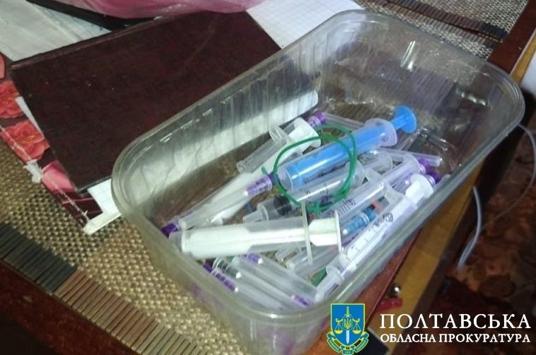 Пресслужба Полтавської обласної прокуратури повідомляє, що вилучену речовину, зовні схожу на макову солому, а також прекурсори, шприци, мобільні телефони було направлено на експертизу.