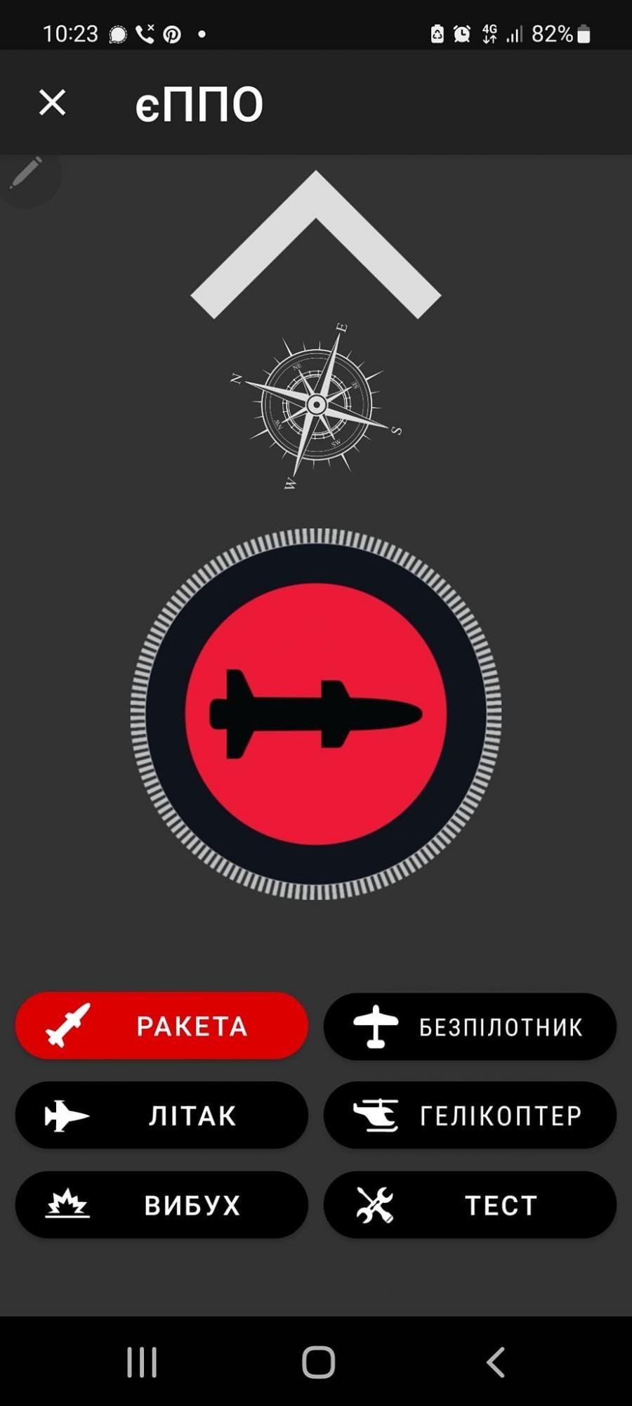 Як працює додаток? Коли ви побачили повітряну ціль, наприклад, крилату ракету чи дрон-камікадзе, треба відкрити єППО на смартфоні, вибрати тип повітряної цілі, направити смартфон у напрямку руху цілі та натиснути велику червону кнопку. Фахівці ППО побачать відмітку на мапі, вона доповнить радіолокаційну інформацію і летюча смерть буде збита.
